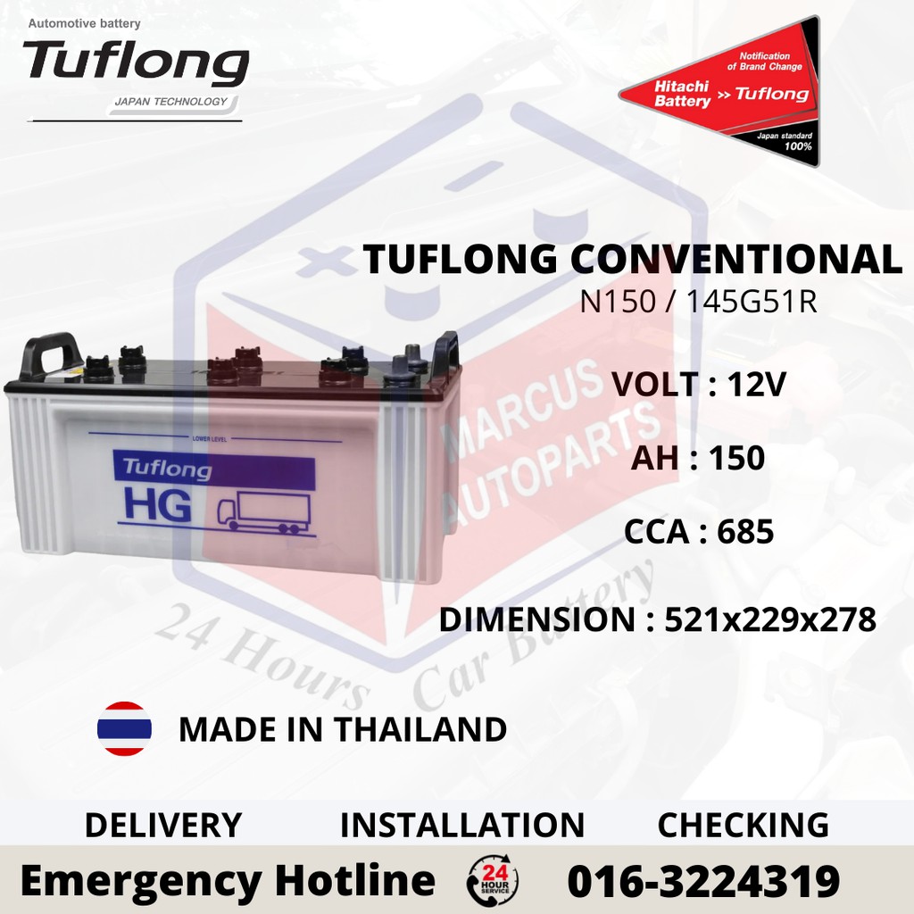 Tuflong Conventional Dry Charge N150 145g51r Automotive Car Battery Shopee Malaysia